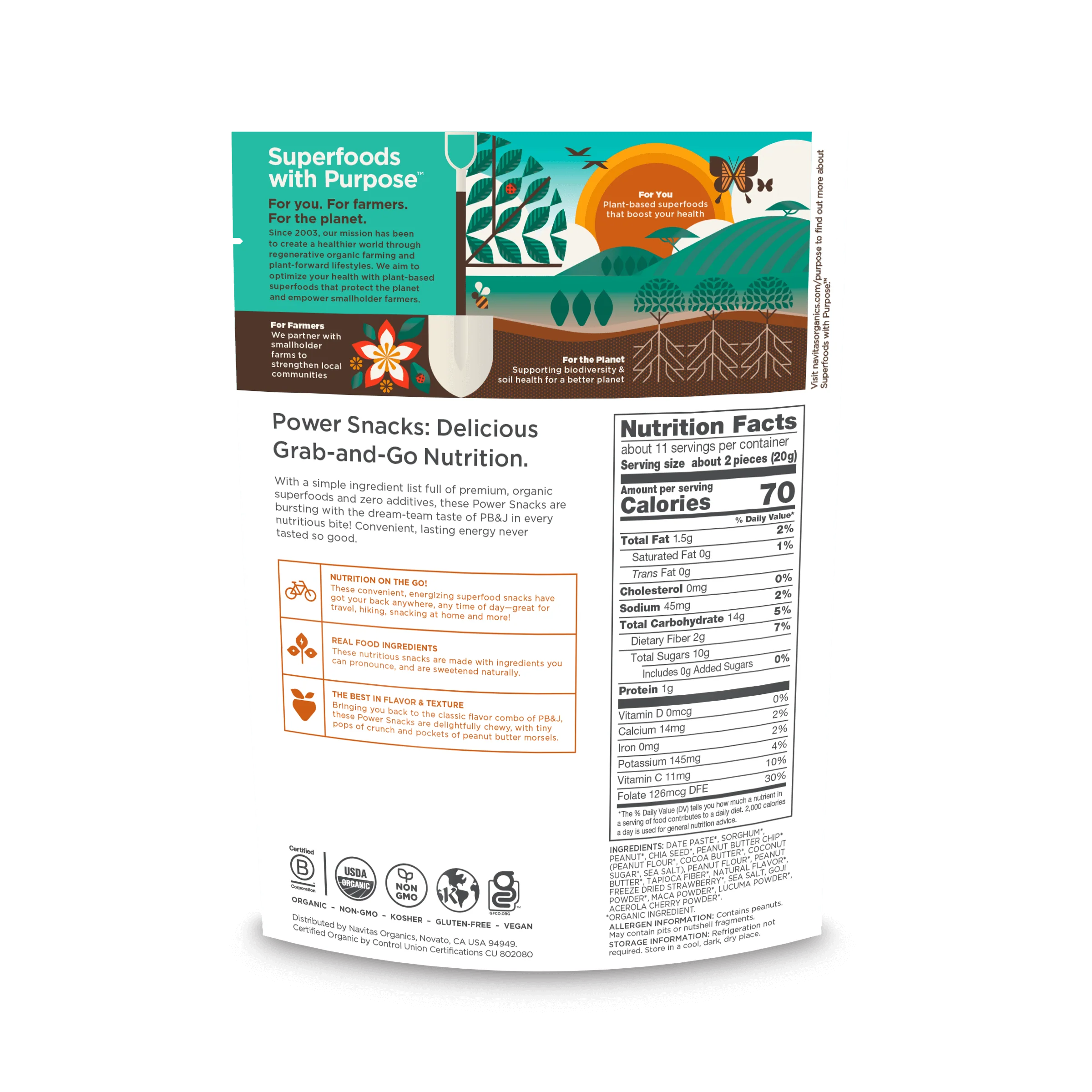 With a simple ingredient list full of premium, organic superfoods and whole food ingredients, our Superfood PB&J Power Snacks are bursting with the dream-team taste of peanut butter and jelly! They’re an excellent, nutritious snack for kids and adults of all ages, designed to be enjoyed anytime, anywhere.